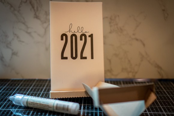 Supplies needed, some type of adhesive. I am using Gina K. Connect Glue but you can use whatever kind you have on hand. The two piece calendar stand and the calendar itself