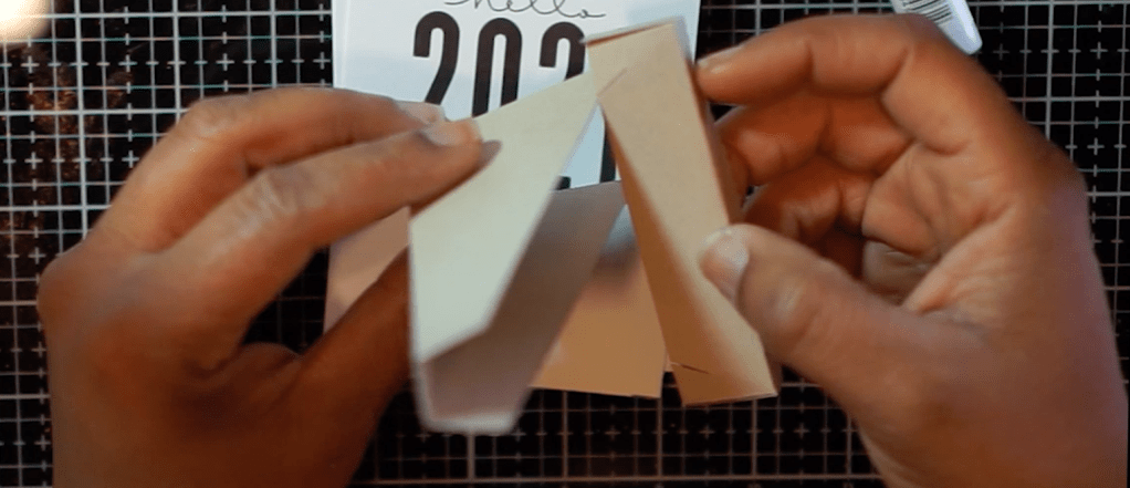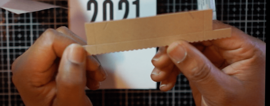 Take the back of the calendar stand which is the big portion and fold it on the score lines.